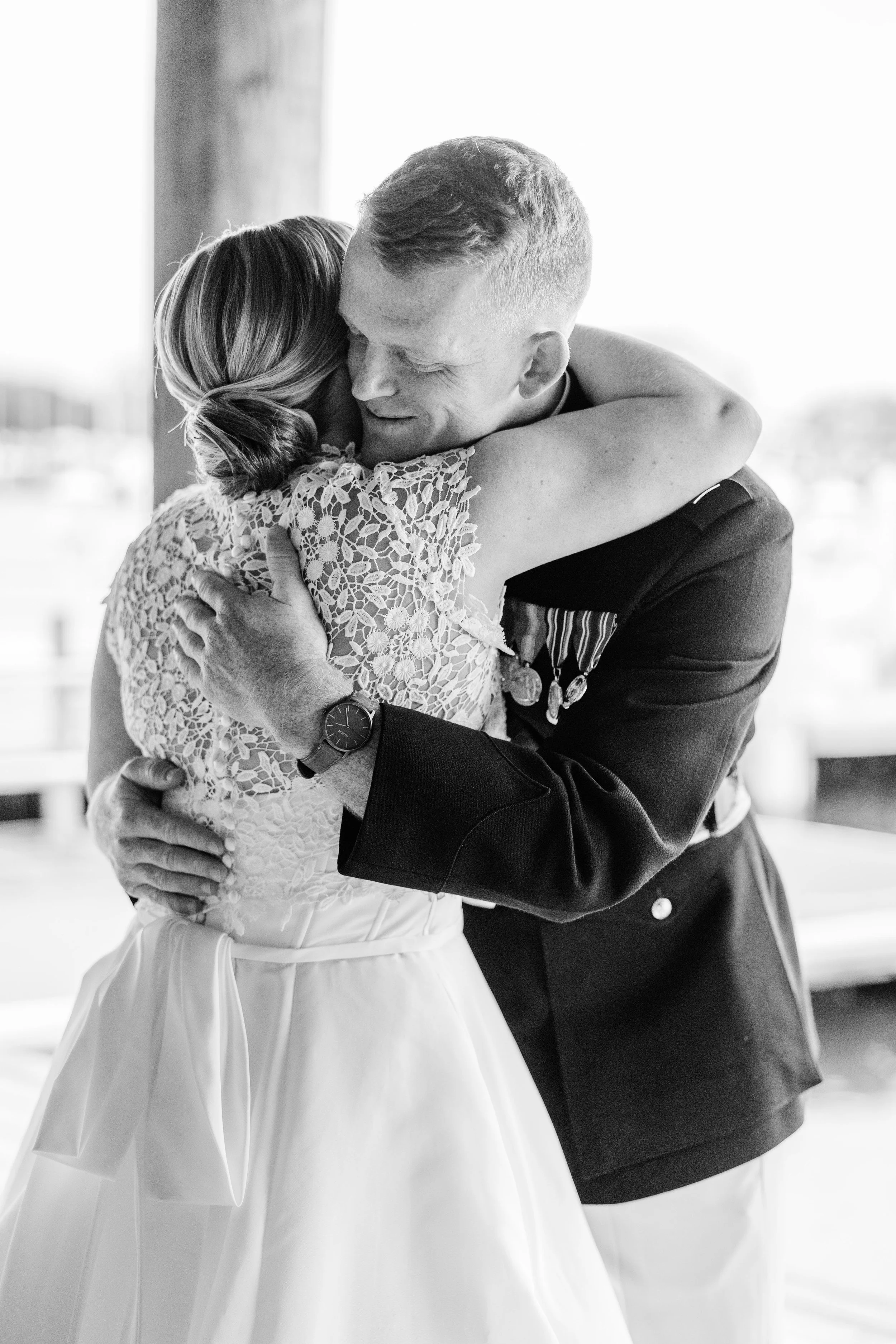 The Marine Sword Arch, a time-honored tradition, brings a unique and dignified element to a wedding ceremony. As the newlyweds exit the chapel or ceremony venue, they pass through the stunning and symbolic arch formed by the crossed swords of uniformed Marine Corps members. This ceremonial gesture is not only a display of precision and military tradition but also a symbolic passage into a new chapter of life. The crossed swords represent protection and solidarity, signifying the Marines' commitment to safeguarding the couple's journey together. The Marine Sword Arch is a powerful visual expression of respect, honor, and the shared values that bind the military community. As the newlyweds pass under the arch, they receive the blessings and well-wishes of their fellow Marines, creating a profound and memorable moment that beautifully blends tradition, camaraderie, and the celebration of love.