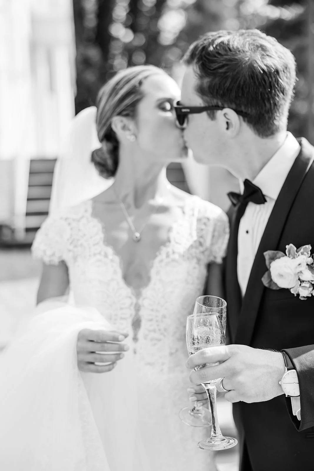 The couple chose to exchange vows at St. Gabriel the Archangel's Roman Catholic Church in Saddle River, a stunning venue with soaring ceilings, intricate stained glass windows, and a peaceful atmosphere. Since they decided not to do a first look, the anticipation was palpable as the groom stood at the altar, his hands clasped tightly in front of him. When the grand doors opened and the bride began her walk down the aisle, a hush fell over the church. The groom's eyes filled with emotion as he saw his bride for the first time, radiant in her lace gown and delicate veil. A perfect beginning to their lifelong journey together.