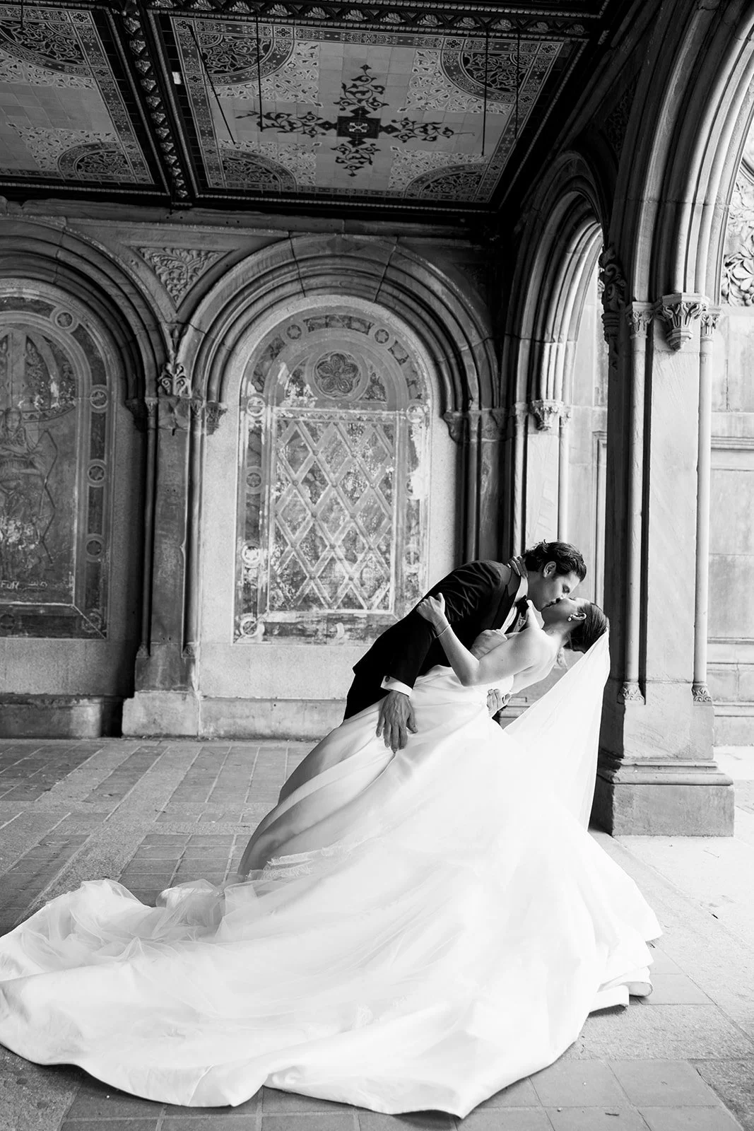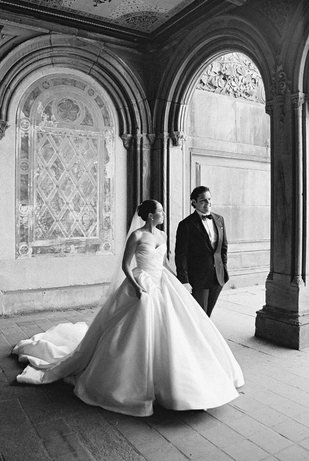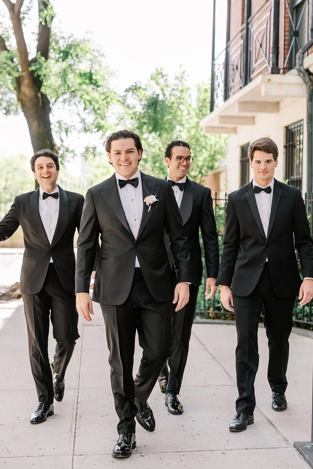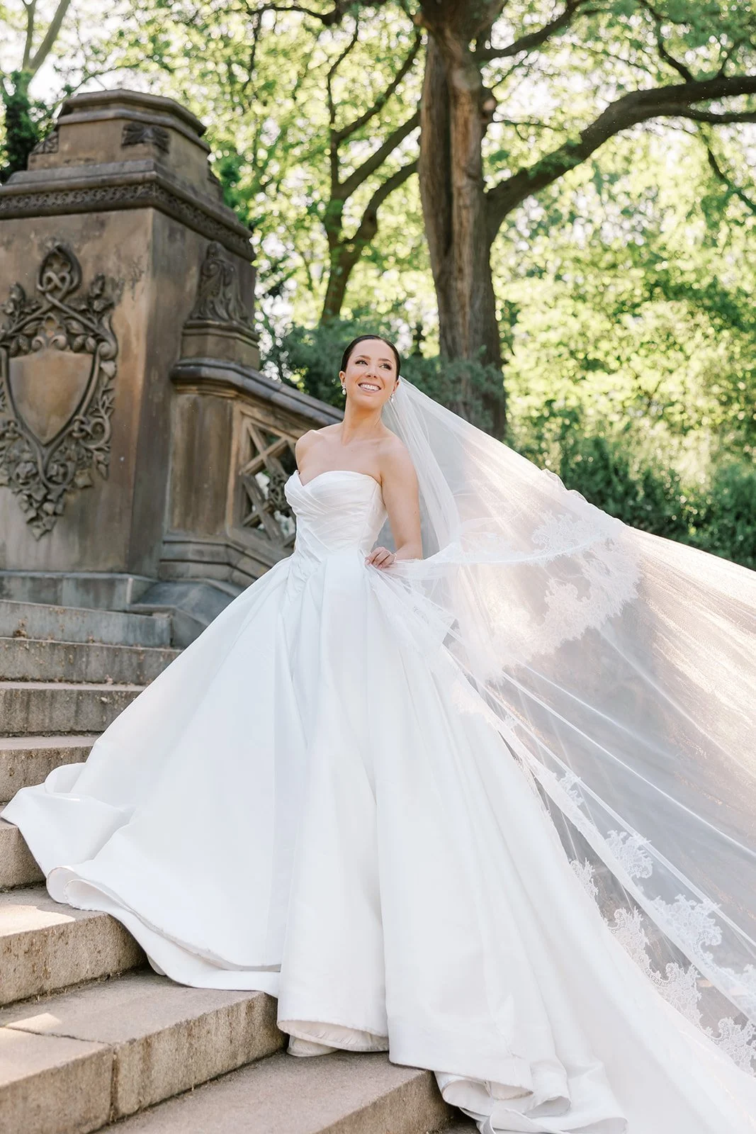 With its lush spring foliage, iconic monuments, and majestic architecture, Central Park was the perfect backdrop for Rebecca and Kevin’s wedding portraits during the beautiful month of May. Rebecca wore a gorgeous ballgown that felt both timeless and romantic, pairing effortlessly with the classic elegance of the park, while Kevin and his groomsmen looked sharp in classic black suits. Their wedding party complemented the setting beautifully, adding to the soft, refined feel of the portraits. We explored several of Central Park’s most scenic locations, and the excitement and joy from Rebecca, Kevin, and their entire wedding party was palpable. Before we knew it, it was time to head to their celebration at Tavern on the Green.