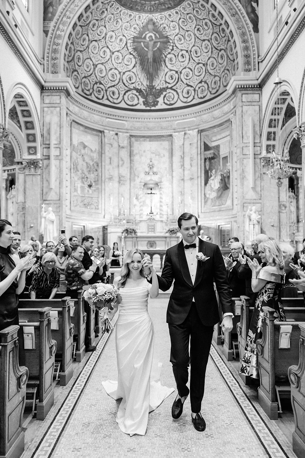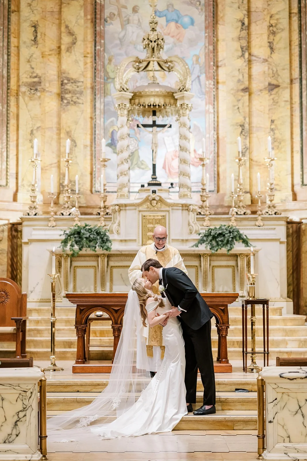 A wedding ceremony at the Church of St. Ignatius Loyola in New York City is a divine union of sacred tradition and architectural splendor, and Erin and TJ’s ceremony embodied that beauty perfectly. Nestled on Park Avenue on Manhattan’s Upper East Side, this neo-Gothic masterpiece provided an ethereal backdrop for their vows, steeped in spiritual significance and timeless elegance. The church’s awe-inspiring altar, adorned with delicate statuary and illuminated by the soft glow of candlelight, set the tone for a ceremony filled with grace and reverence. As Erin and TJ exchanged vows beneath the soaring vaulted ceilings, framed by intricate arches and delicate tracery, their words echoed through the hallowed halls, creating a transcendent atmosphere and an unforgettable, deeply meaningful moment in the heart of New York City.