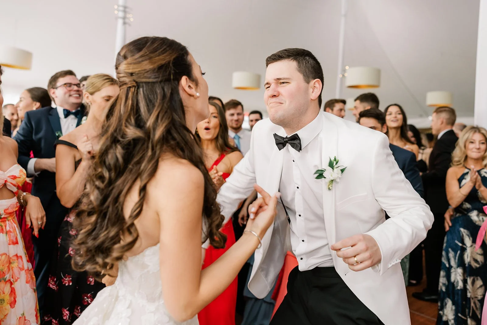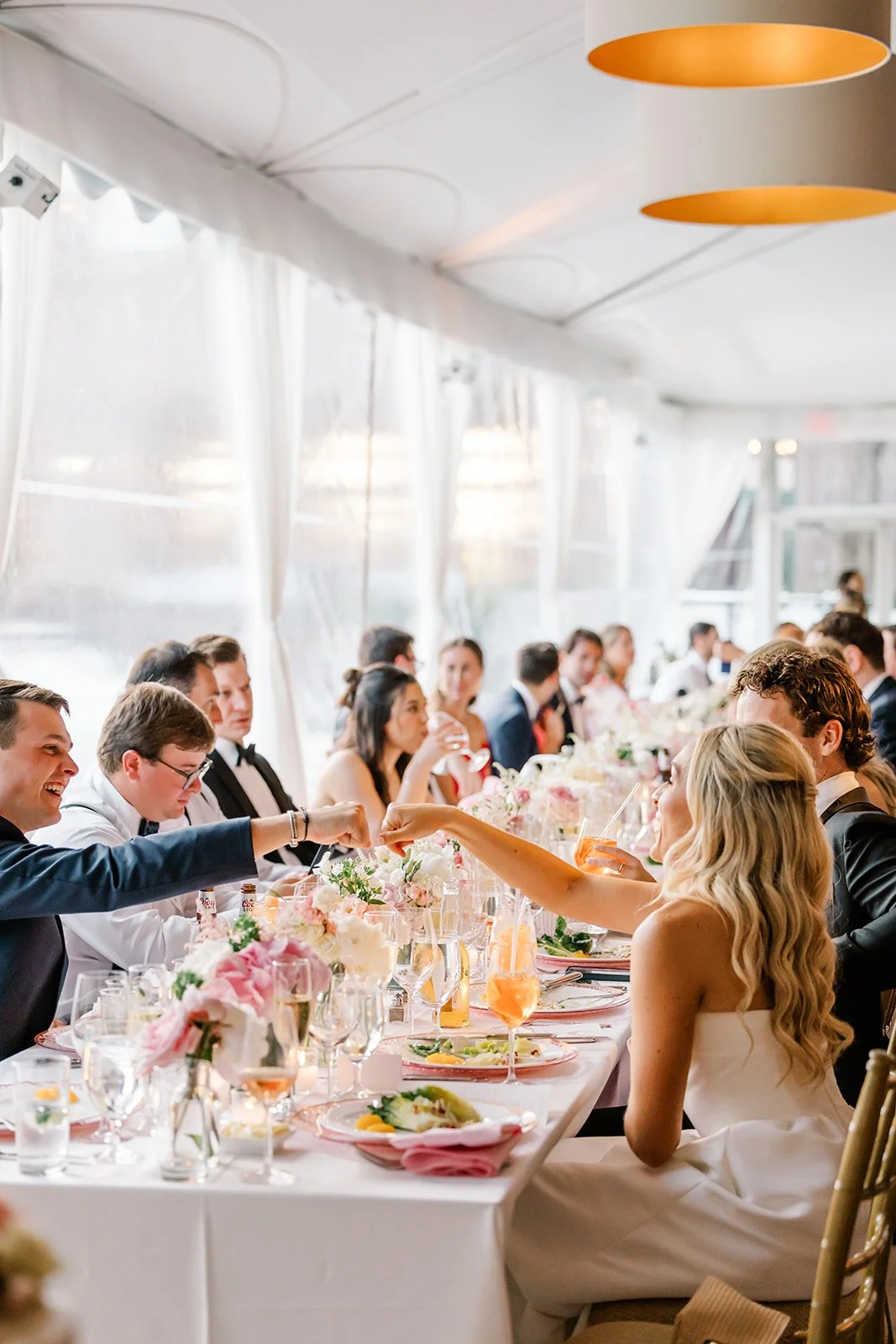 Julianna and Timmy’s reception took place under a stunning custom tent at Westchester Country Club, designed to host nearly 300 guests while still feeling elegant and inviting. The space felt magical from the moment you stepped inside, with beautiful lighting, thoughtful design details, and that unmistakable buzz of excitement that comes when everyone is ready to celebrate. It struck the perfect balance between grand and intimate, giving them room for a packed dance floor while still keeping the warmth of the evening. The Hank Lane band brought incredible live energy, filling the tent with music that had guests on their feet all night long and turning the reception into the kind of unforgettable party everyone will be talking about for years.
