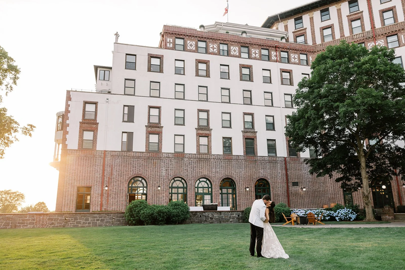 There are some venues that instantly set the tone for a wedding day, and Westchester Country Club, a private country club located in Harrison, New York, does exactly that. With its grand classic architecture, sweeping manicured grounds, and timeless old-world elegance, it creates a setting that feels both luxurious and welcoming. It is the kind of place where every corner feels photo-worthy. From the stately exterior to the soft, glowing light that settles over the property in the evening, it was the perfect backdrop for Julianna and Timmy’s June wedding day, a celebration that felt refined, emotional, and completely filled with heart.