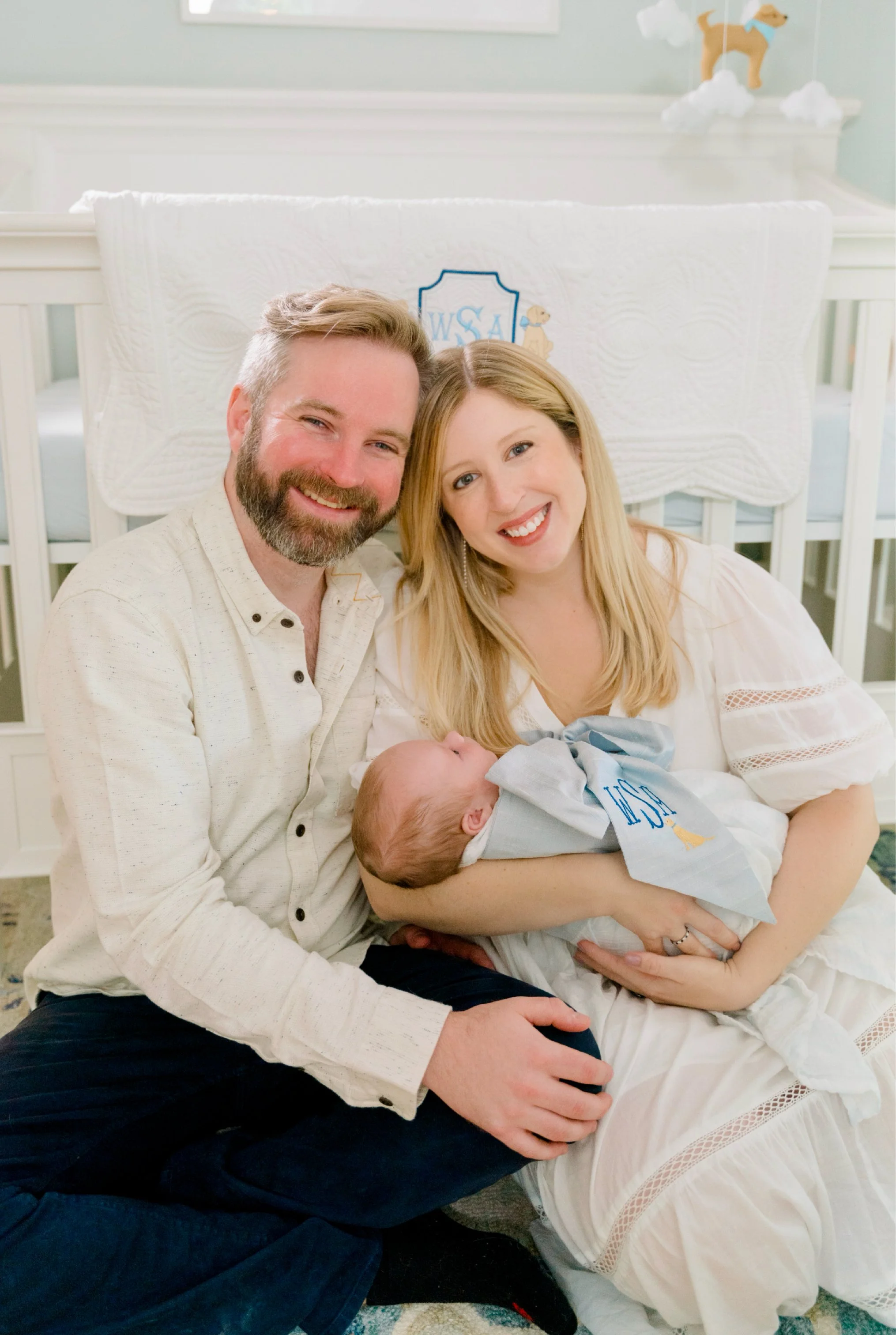 I love to document all the adorable elements of a nursery. Think about anything you’d love to see photographed alongside your baby. For example, monogrammed blankets, embroidered onesies, name plates, special toys, or heirloom items. They add personality, story, and a sense of heritage that you’ll treasure for years.